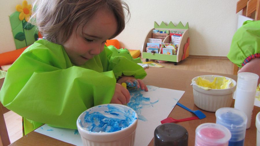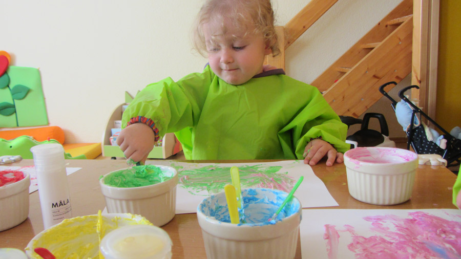 Beim Spielen werden fast immer alle Sinne geschult. Spielen fördert die sozialen, emotionalen, kognitiven, motorischen und sprachlichen Kompetenzen. Es gibt zwei Arten des Spieles: das angeleitete und das freie Spielen, wobei das eine fast nahtlos in das andere übergeht. Beim angeleiteten Spielen kann die Kinder dort abholen, wo jedes in seiner Entwicklung steht und so individuell fördern z.B. durch Kneten mit Salzteig. Bilderbücher und gemeinsames Singen fördert die musikalische und sprachliche Entwicklung.